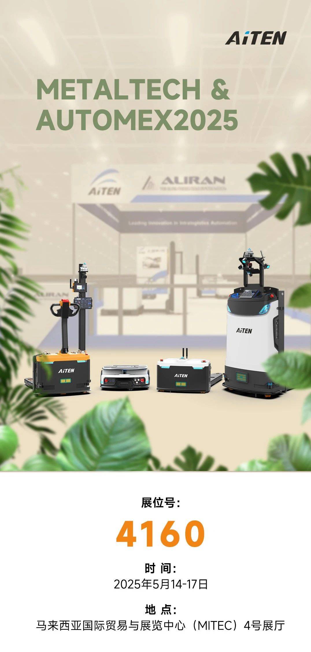 倒计时启动!诚邀您参与现场动态演示,mile.comAiTEN将携搬运移动机器人AM15,MP10,APE15,TT15惊艳亮相(2025.5.14-17)。